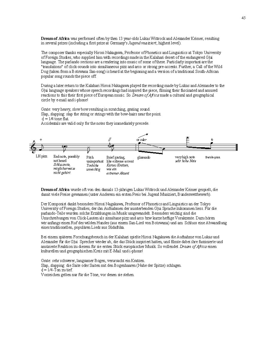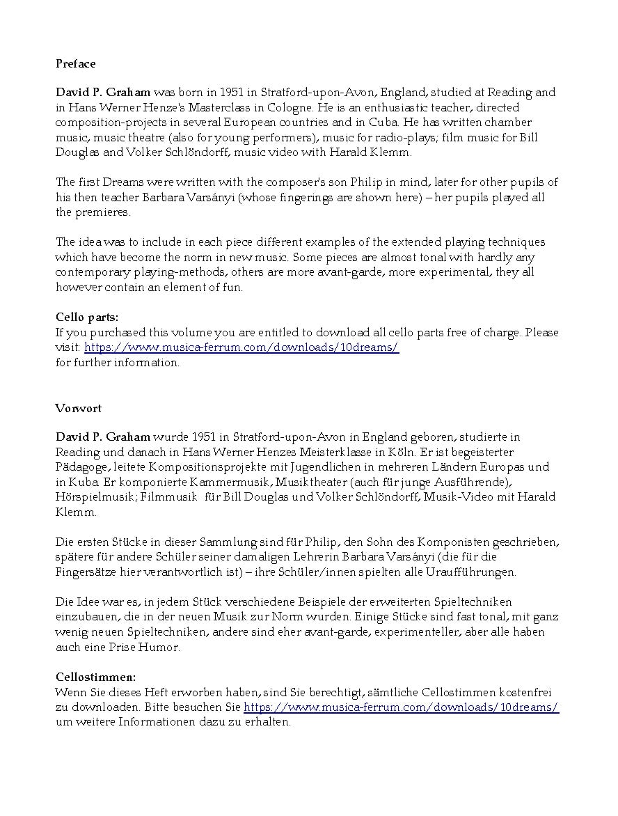 A collection of 10 works for cello and piano, composed by British composer, living in Germany, David P. Graham, based on his pedagogical approach to teaching composition and his experience both as a composer and a pedagogue. These works explore contemporary techniques in a relatively simple settings, each one based in a different area of the world.